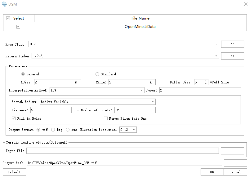 - Путь к выходу: сохраните файл цифровой модели рельефа по указанному пути.