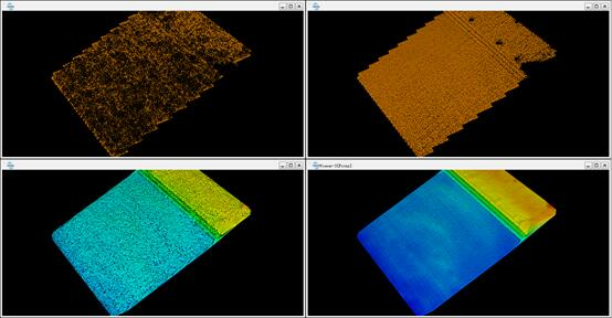 Инструмент «Извлечение медианных точек рельефа» можно использовать для получения облака точек рельефа, которое будет тоньше и ровнее, чем облака, полученные с помощью традиционных методов фильтрации облаков точек. Создание такого облака точек рельефа позволяет учитывать точки, находящиеся в более плотном и толстом облаке точек рельефа. Этот метод относится к этапу оптимизации после извлечения исходных точек рельефа. Поэтому данные облака точек сначала необходимо классифицировать с помощью метода классификации точек рельефа. Результаты сравнения до и после использования метода классификации по медианным точкам следующие: