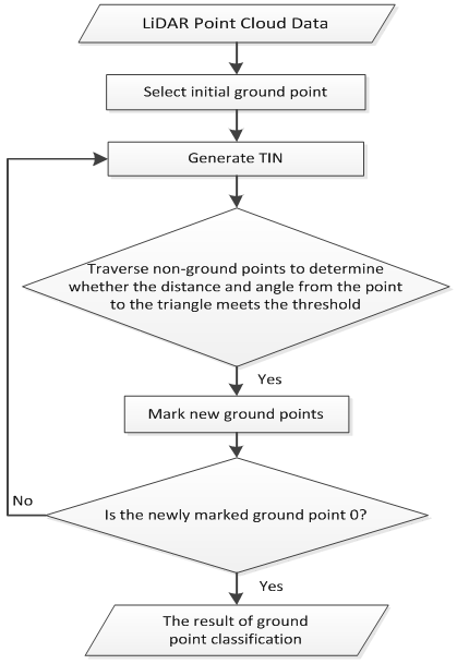 Сначала алгоритм создаёт разреженную триангулированную нерегулярную сеть (TIN) на основе исходных точек, а затем итеративно обрабатывает слои до тех пор, пока не будут классифицированы все наземные точки. Конкретные этапы алгоритма описаны ниже.