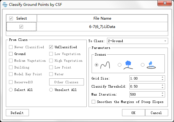 Классификация наземных точек — это основная операция при обработке данных облака точек. В этой функции используетсяалгоритм фильтрации наземных точек на основе имитации ткани(фильтр имитации ткани, IPTD(Чжан и др., 2016)).