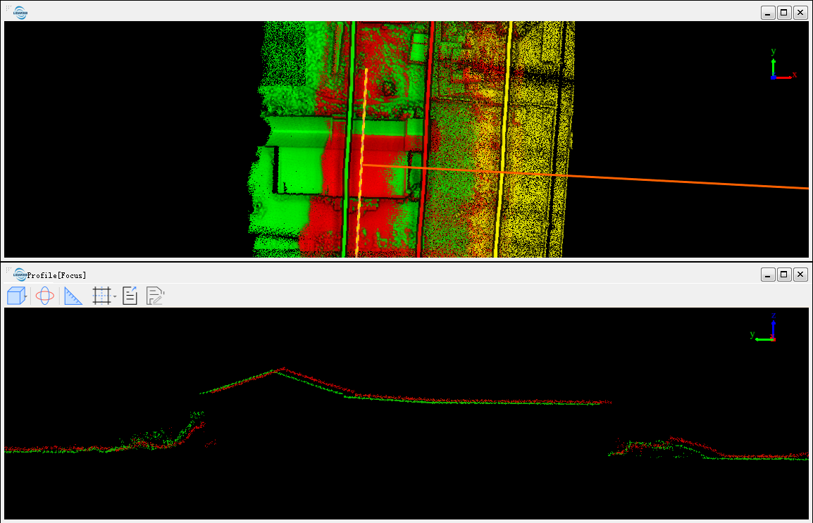 При сшивании треков нам нужно просмотреть разницу в положении данных между разными поясами, вызванную погрешностью угла установки в окне профиля.
