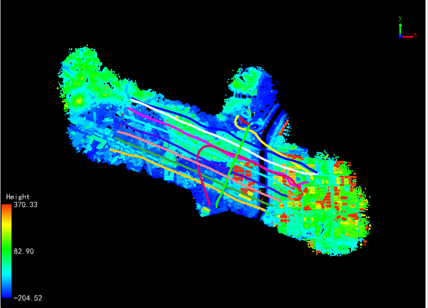 - Загруженное облако точек: загруженное облако точек, которое сопоставляется с траекторией в LiDAR360. При применении преобразования изменяется соответствующее облако точек, и эффект преобразования может быть показан в режиме реального времени. При выходе из модуля boresight соответствующее преобразование исключается без сохранения.