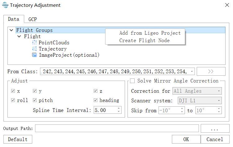 - Добавить из проекта Ligeo: щелкните правой кнопкой мыши по Группам полетов, чтобы импортировать файл проекта Ligeo, который автоматически добавит файлы облака точек и траектории. Поскольку в файле проекта Ligeo не указан файл проекта изображений, при необходимости его нужно добавить в узел Проект изображений