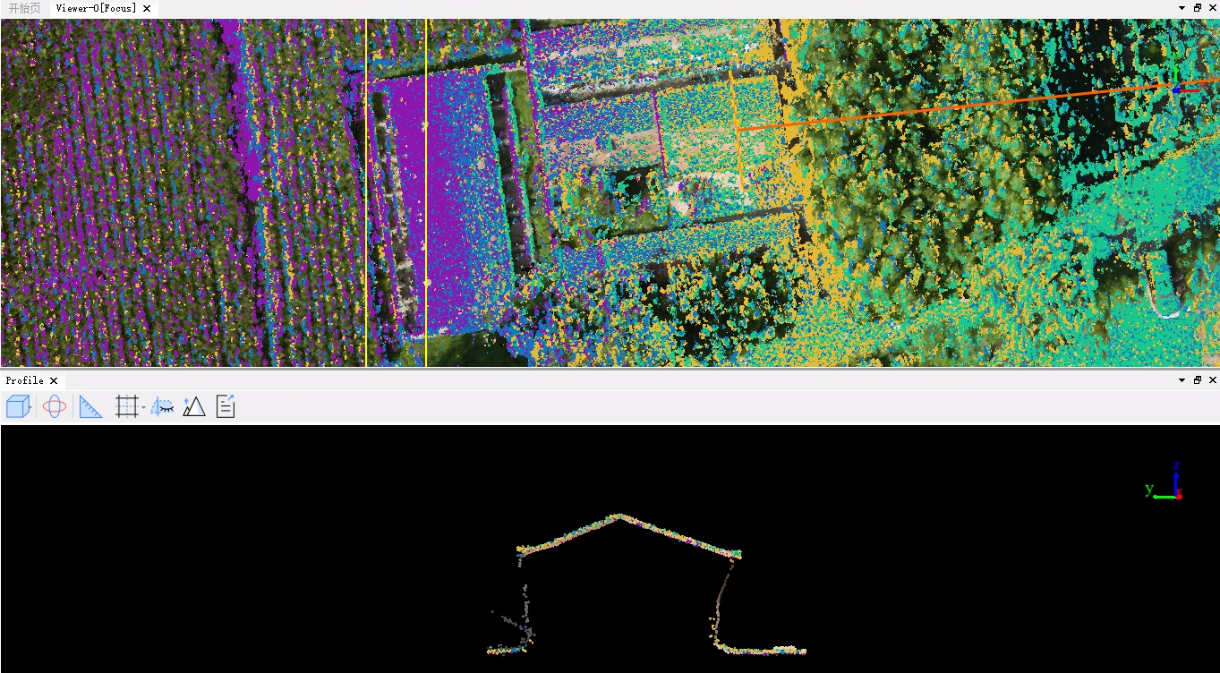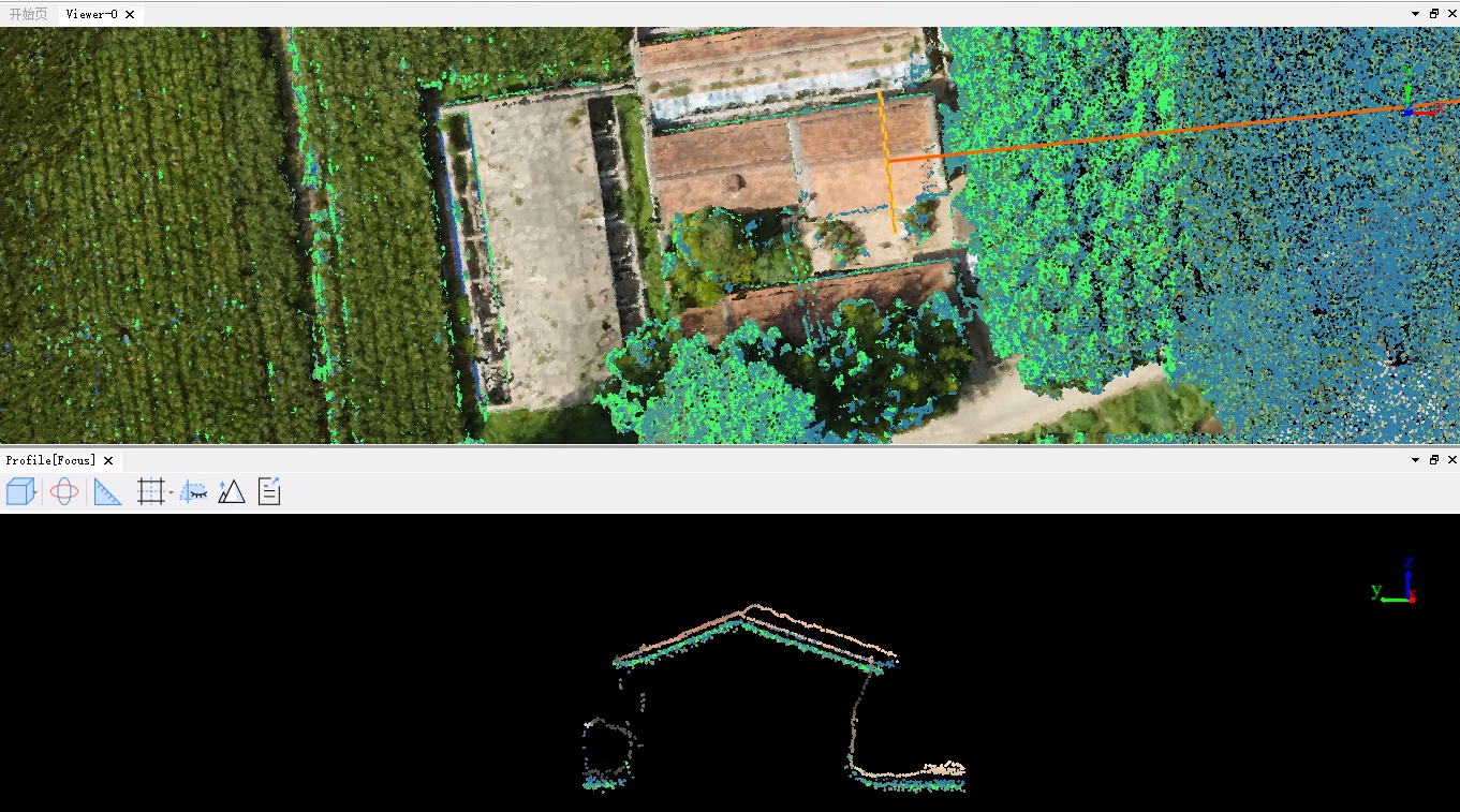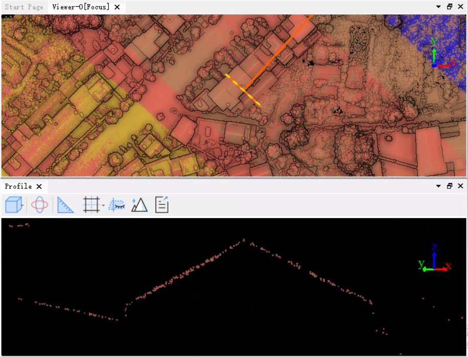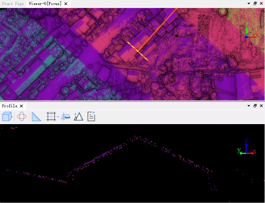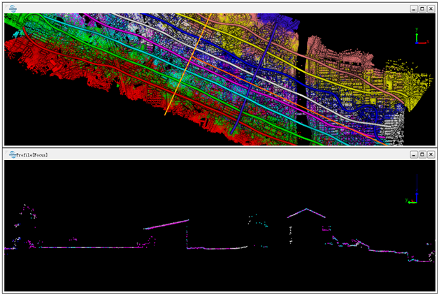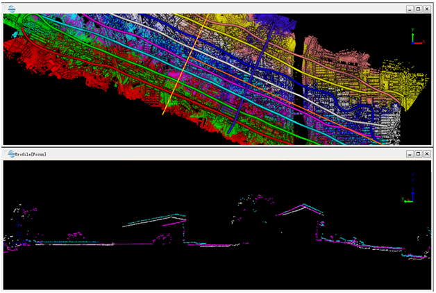 Пользователи могут использовать инструмент «Профиль» для просмотра результатов коррекции облака лазерных точек, как показано на рисунке.