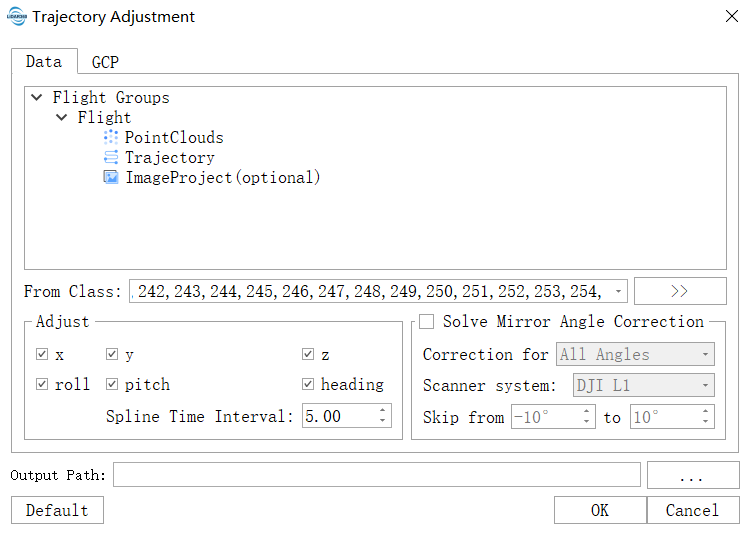 - Путь вывода: путь для хранения выходных файлов после выполнения функции. Выходные файлы включают в себя скорректированные облака точек, траектории, проекты изображений и статистический отчёт в формате HTML.