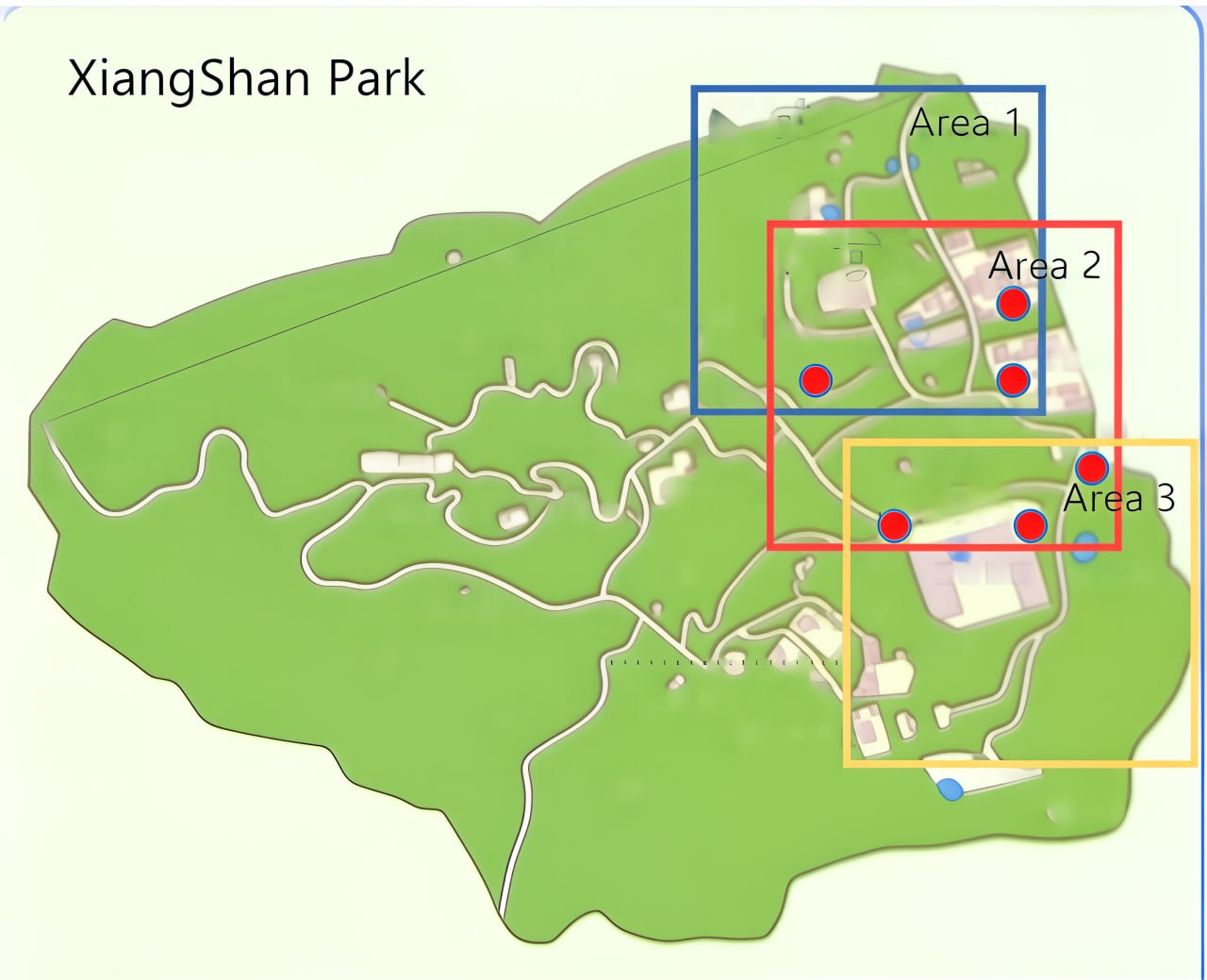 При использовании сканера для сбора данных на обширной территории общую площадь съемки следует разделить на участки. Это делается для повышения эффективности и точности обработки данных, а также для удобства управления территорией съемки. Разделите большую территорию съемки на несколько малых участков. Рекомендуется, чтобы время сбора данных для каждого планируемого участка не превышало 25 минут.
