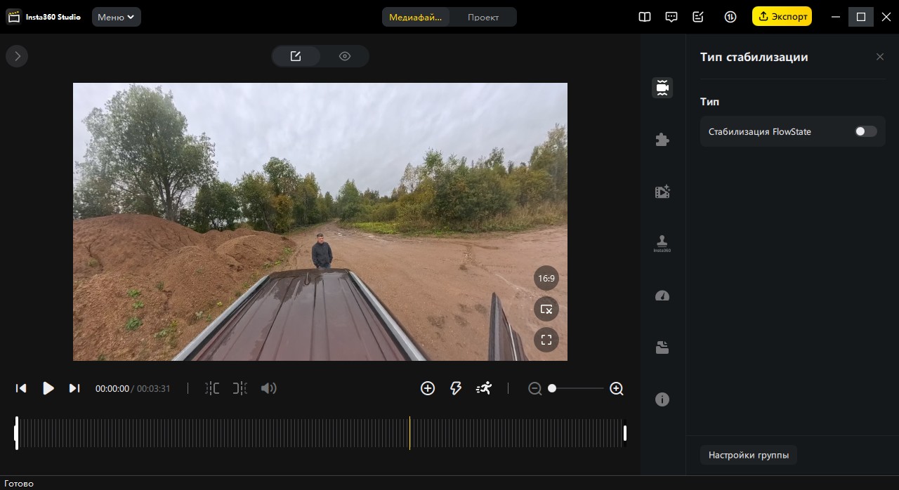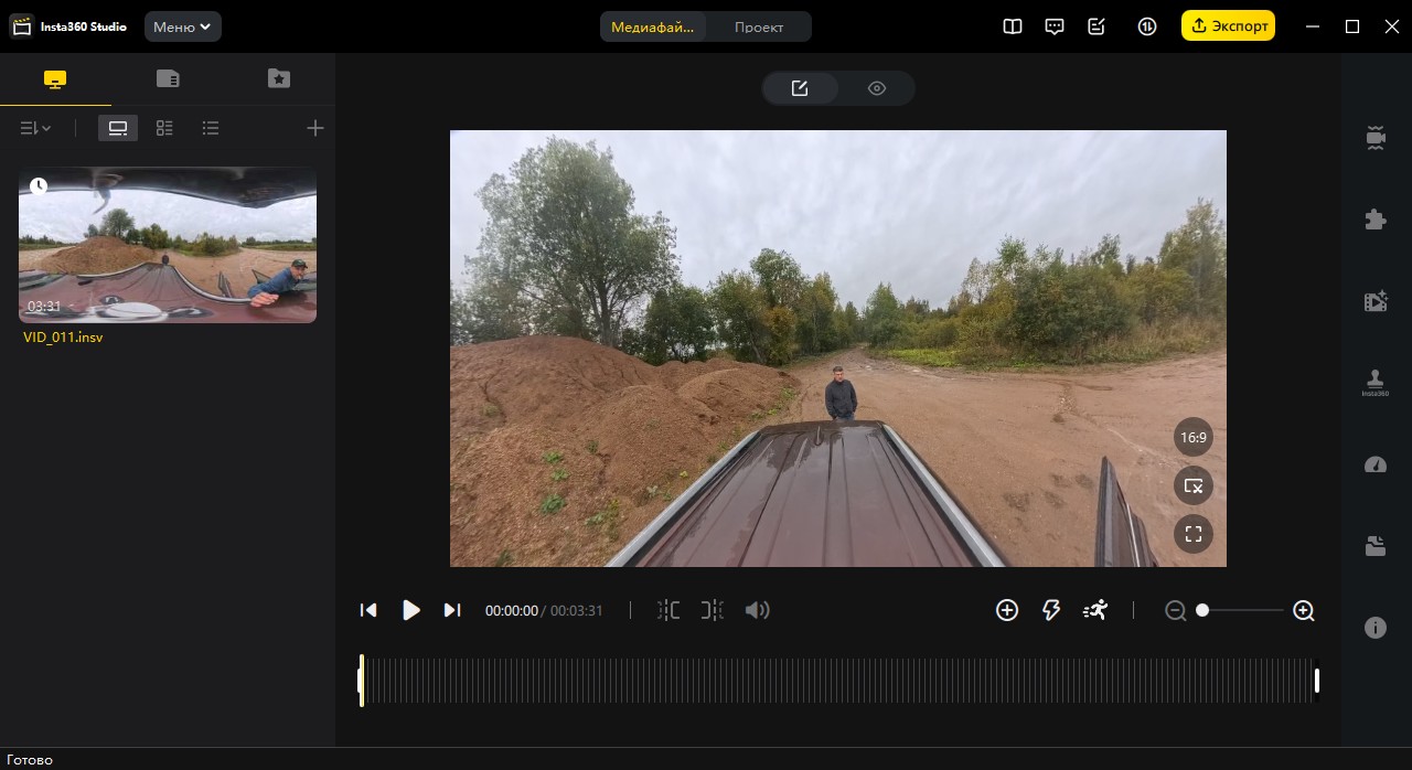 В процессе съемки, камера Insta 360 записывает данные в собственные форматы *.lrv и *.insv - это форматы оптимизированы для работы с панорамным видео в фирменном программном обеспечении. Для дальнейшей обработки, в частности для раскрашивания облака точек, видеопоток необходимо преобразовать в стандартный формат *.mp4, для этого нужно установить программу Insta360 Studio.