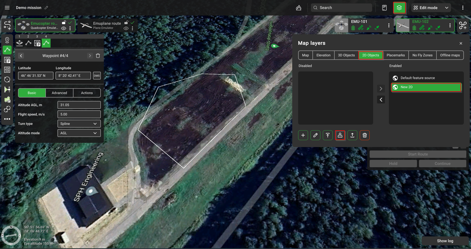 UgCS позволяет добавлять пользовательские 2D-объекты в формате KML для их отображения на карте UgCS.