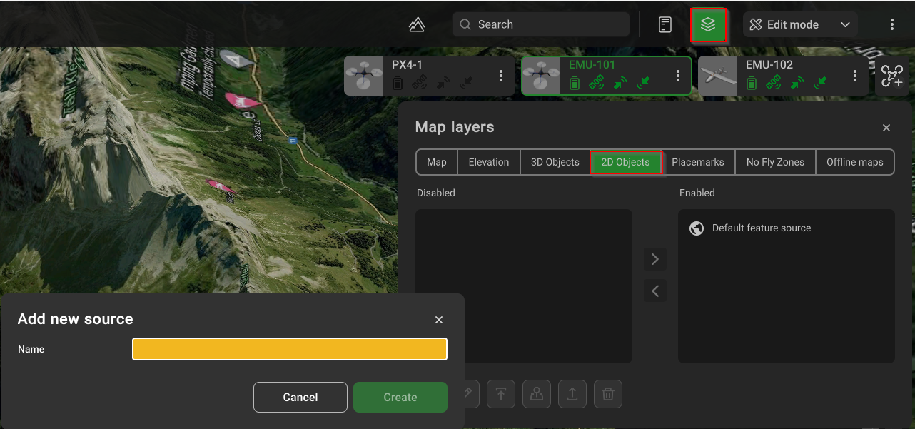 - Откройте параметры карты > 2D-объекты > Добавить: