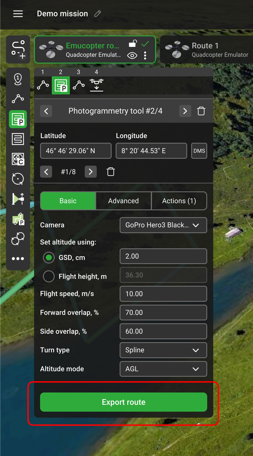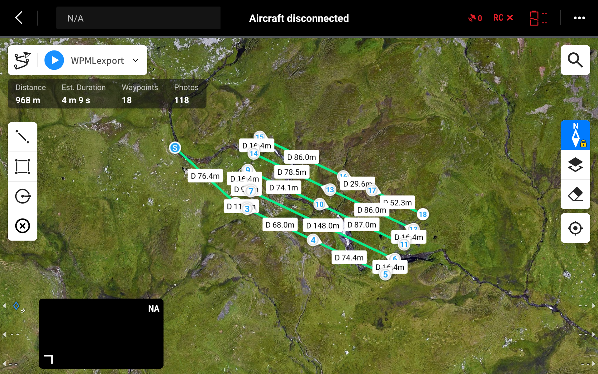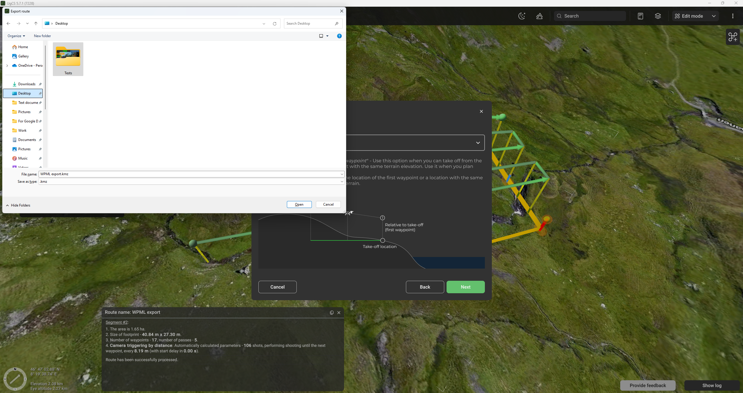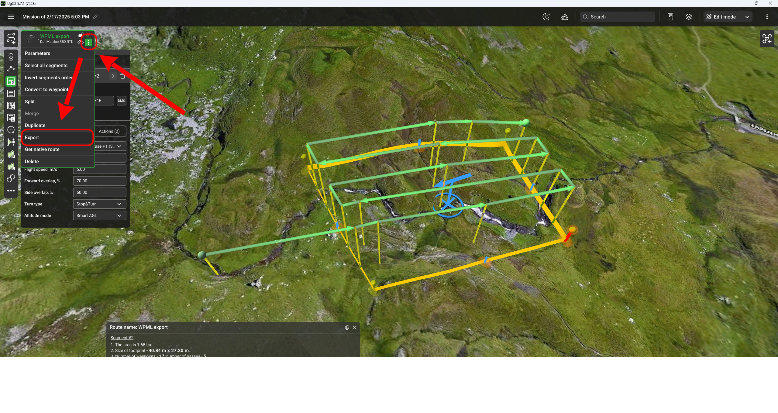 UgCS позволяет экспортировать маршруты в виде файлов WPML (в формате *.KMZ), которые затем можно импортировать непосредственно в DJI Pilot 2.