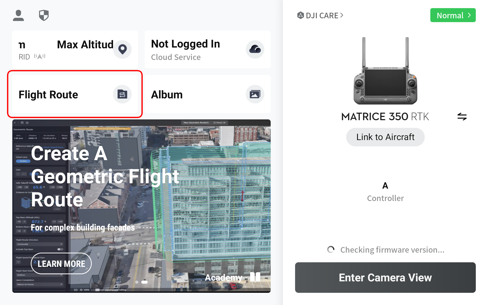 Запустите приложение DJI Pilot 2 на пульте дистанционного управления;