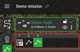 Тип поворота — определяет, как транспортное средство проходит отрезки пути. Для каждого автопилота предусмотрены разные способы прохождения путевой точки. Для автопилота Ardupilot это «Прямо» и «Сплайн». Для автопилотов DJI это «Стоп и поворот» (по умолчанию) и «Адаптивный крен». Информацию о поддерживаемых типах поворотов и функциях см. в руководстве по эксплуатации транспортного средства. Для типов поворотов по умолчанию в окне планирования маршрута не отображается значок на соответствующих путевых точках, в отличие от других типов поворотов.