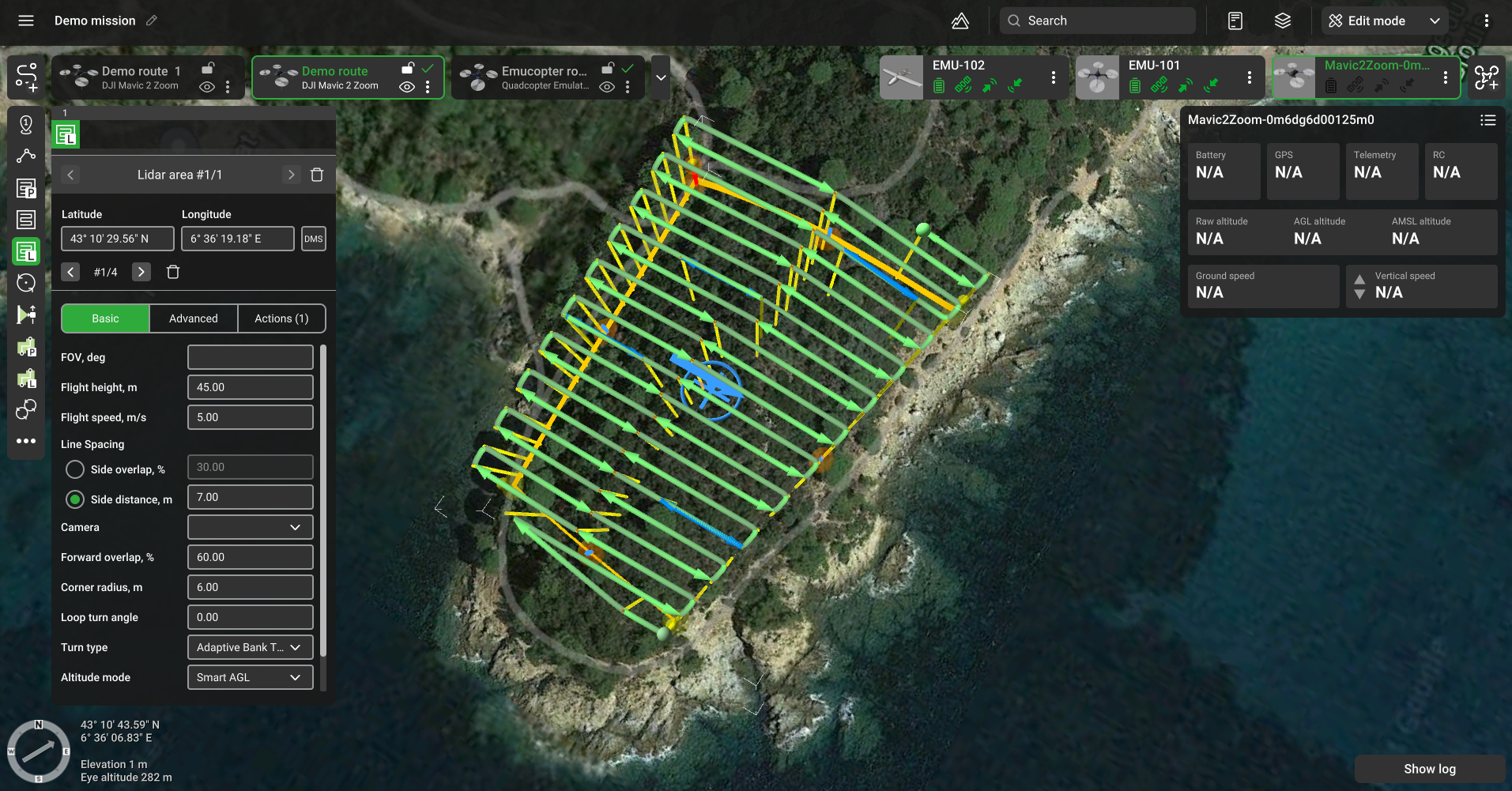 В случае с процентным соотношением программа рассчитает расстояние между линиями на основе угла обзора и высоты полёта.
