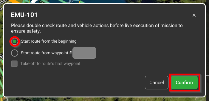 • Начать маршрут с начала. Миссия начнется с первой путевой точки.